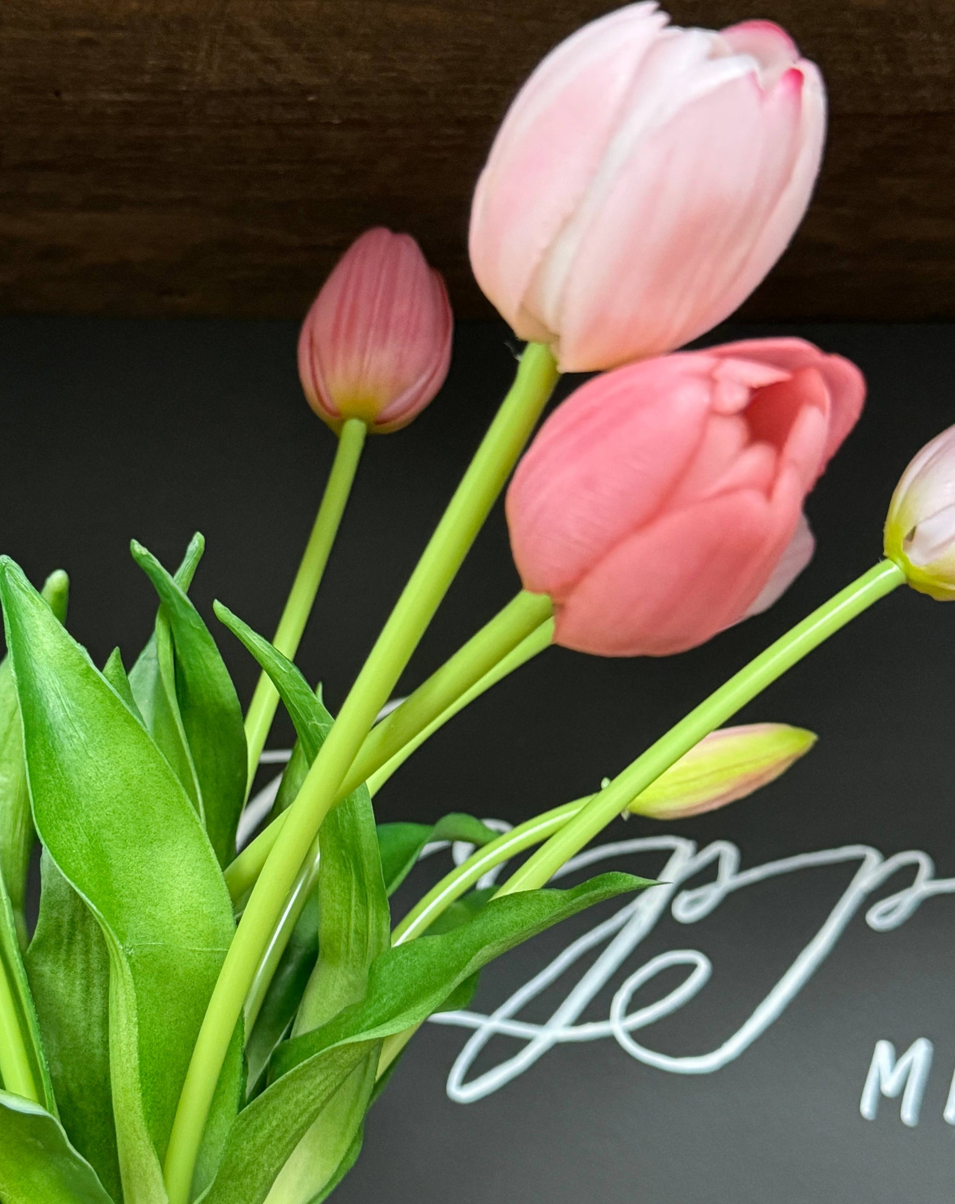 The tulip bud bouquet will warm up any room or add a special pop of color to any faux floral arrangement. Style alone, or used as an accent in a floral arrangement. The soft rubber petals and greenery offer a nearly-natural feel that makes this tulip bundle even easier to love.
