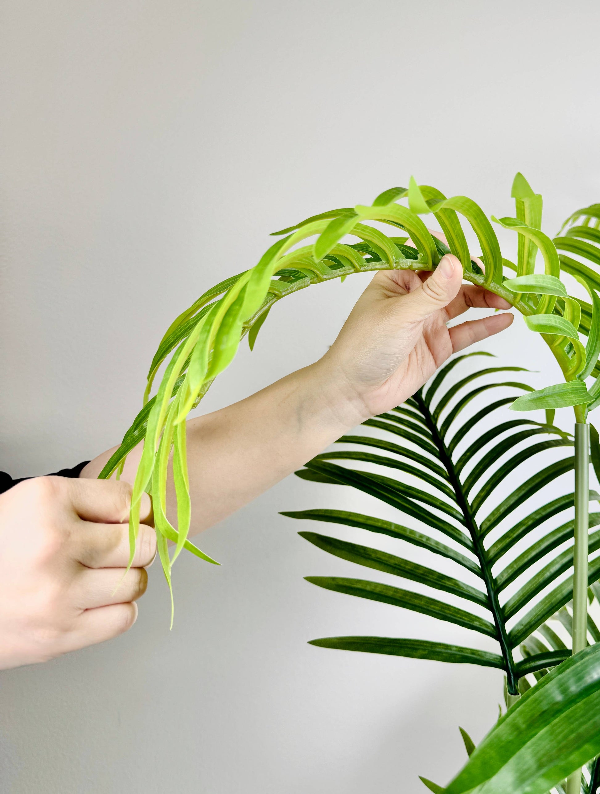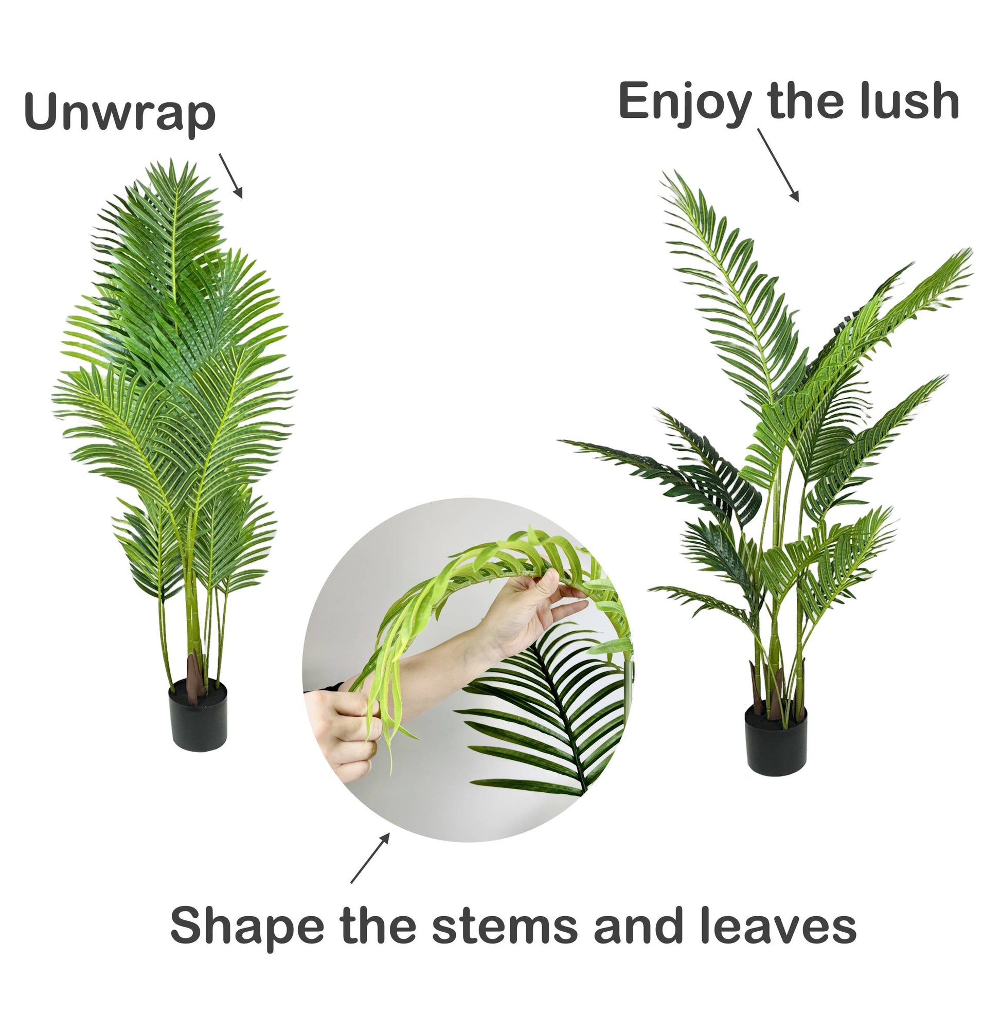Experience the year-round verdant beauty of our lifelike artificial palm tree plant. It features 15 large leaves ranging from 13 inches to 2 feet in size.