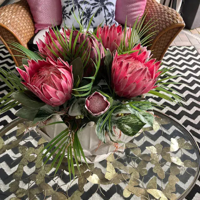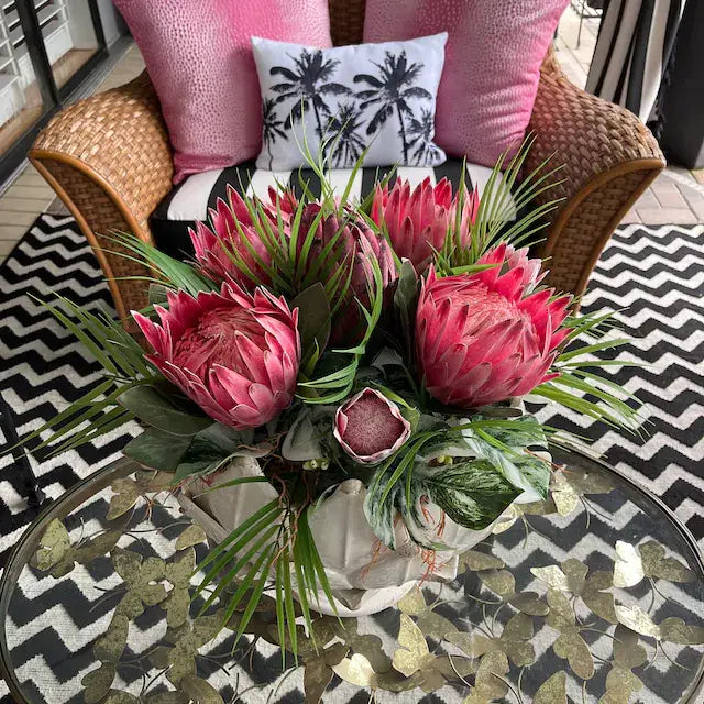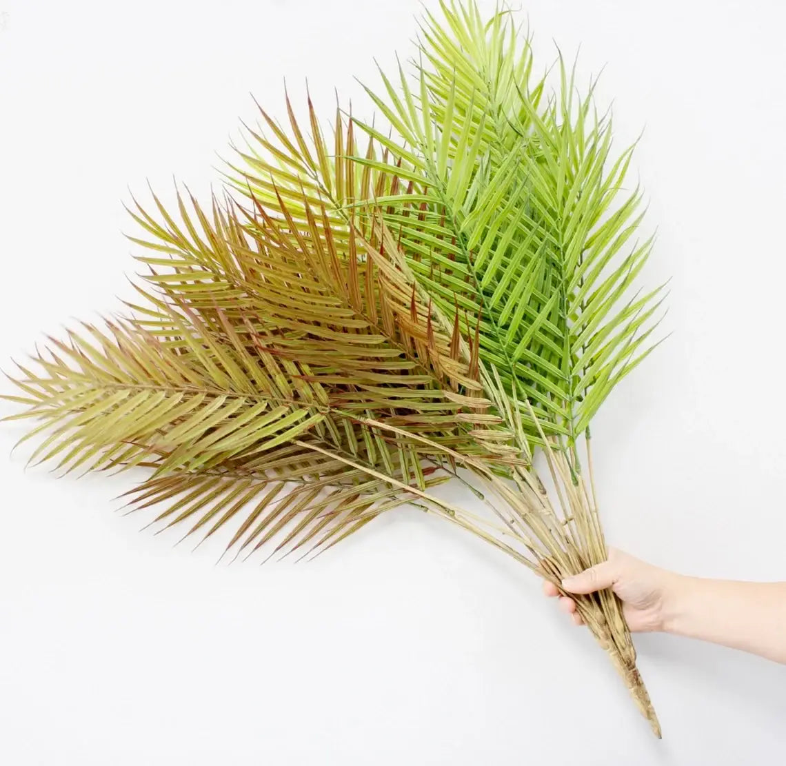 Make a statement with artificial tropical leaves, like this indoor/outdoor soft plastic palm leaf branch. Showcase the artificial palms in your tall vase for simple but sophisticated decor, or add to wedding centerpieces. Use UV Protectant Spray to keep color vibrant.