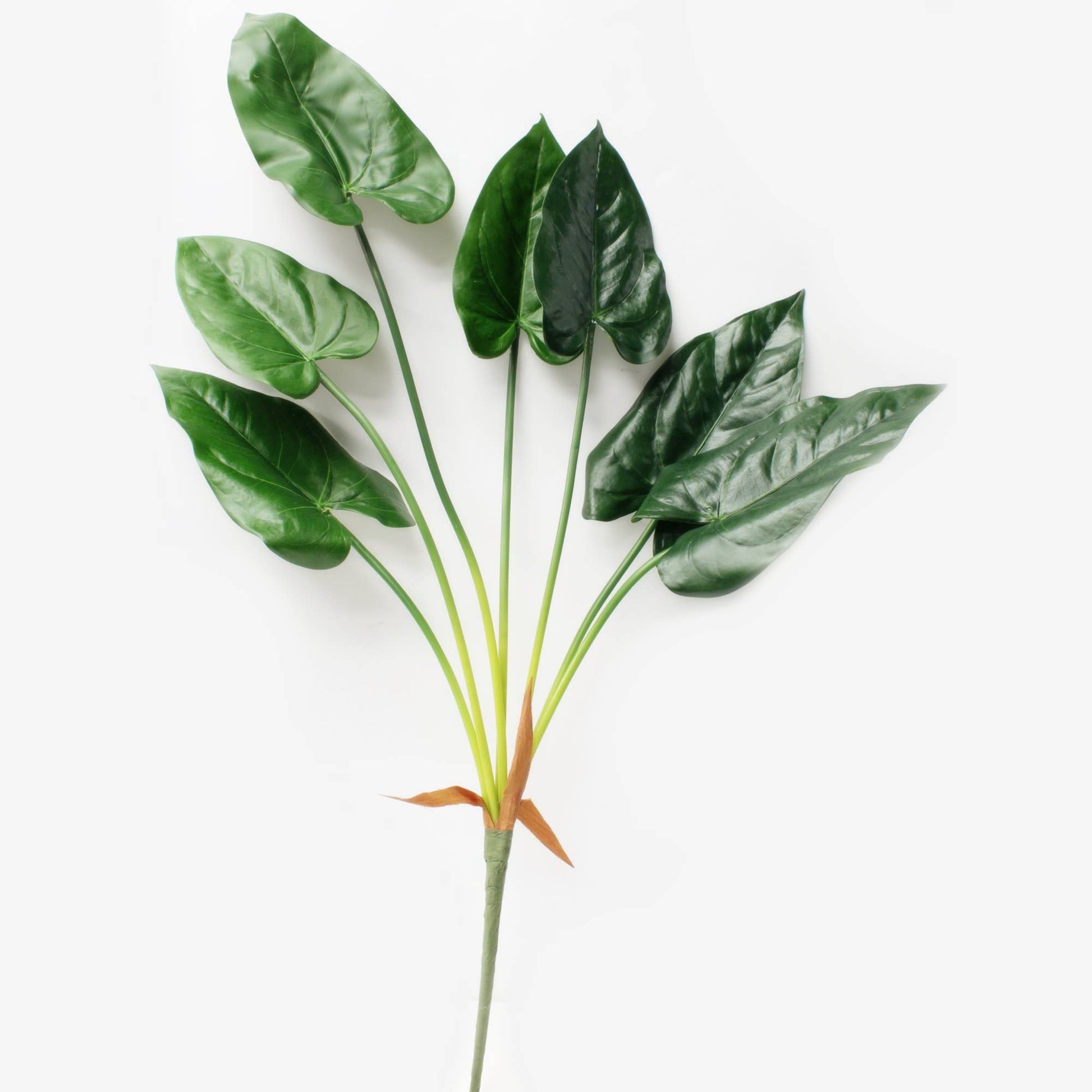 Make a statement with artificial tropical leaves, like this indoor/outdoor soft plastic calla leaves. Bendable stems can be easily shaped or cut.