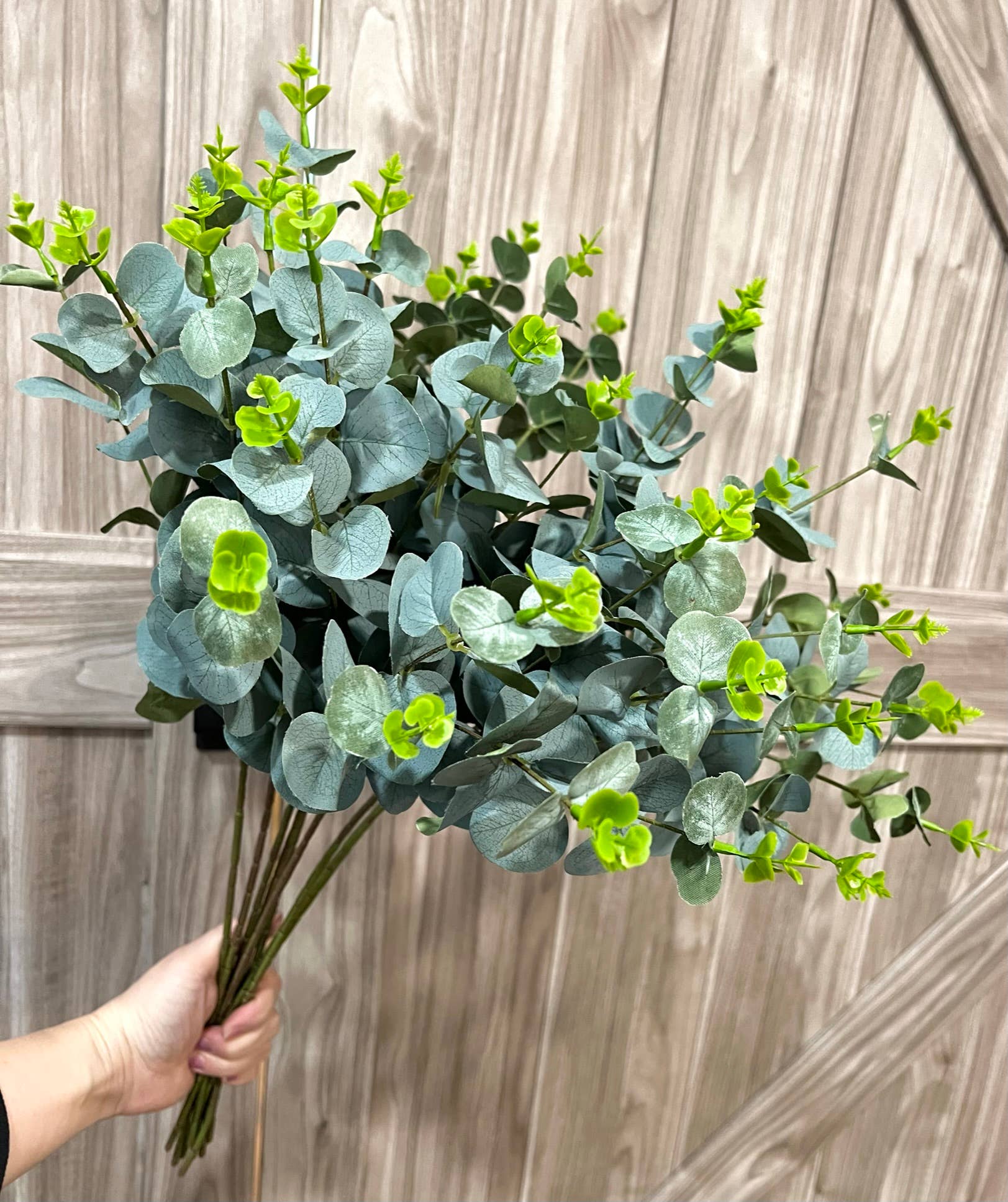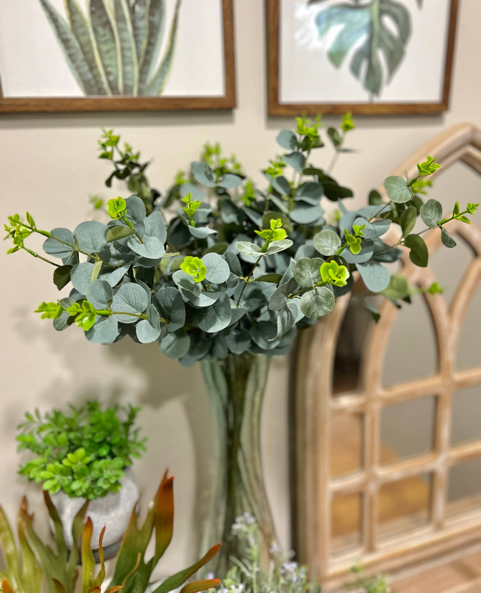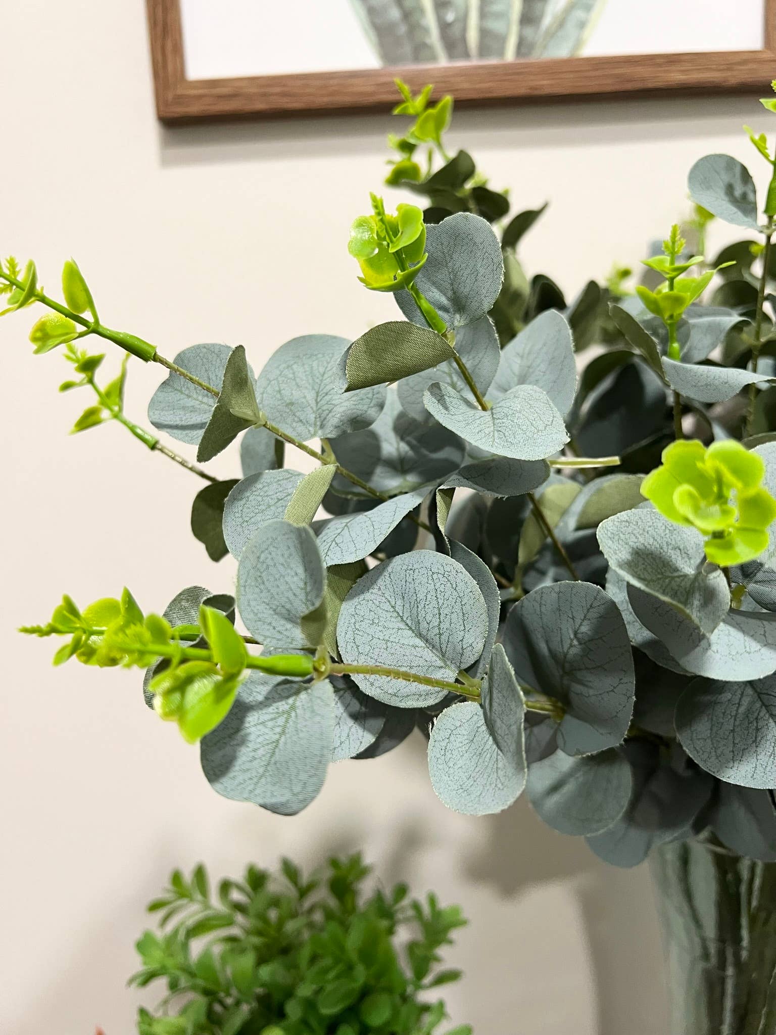 This beautiful spiral eucalyptus spray in bluish green is the perfect faux greenery to bring the look of nature to your home decor. Style these artificial leaves in a tall vase to create a stunning statement piece or cut to pair with floral arrangements.