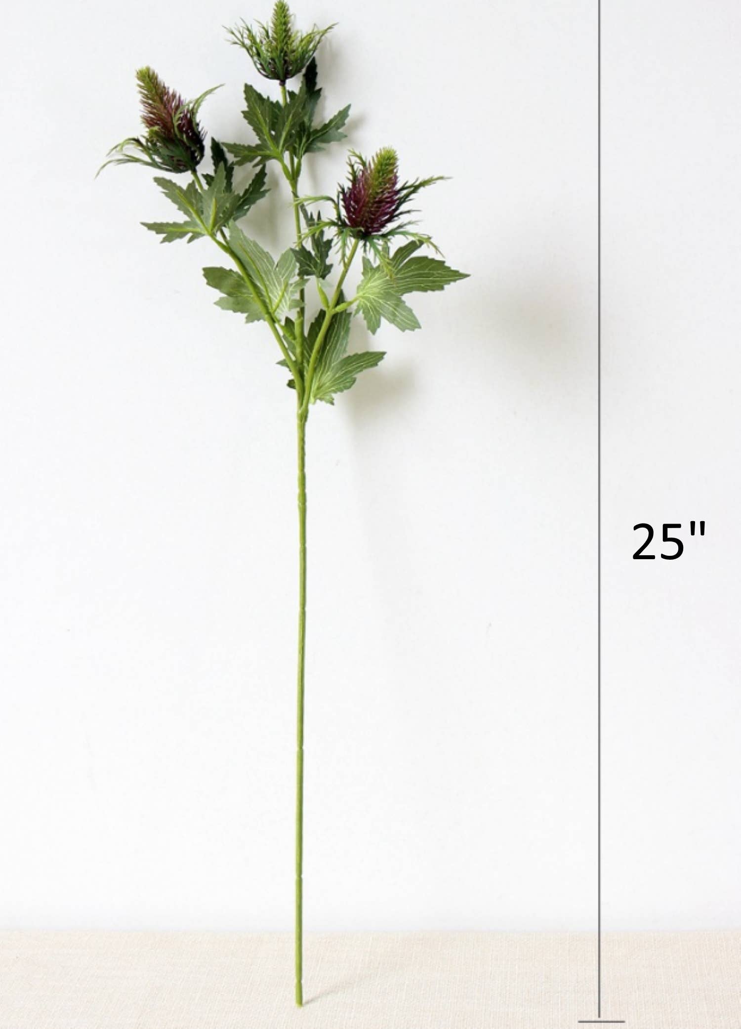 Beautiful, faux thistle wild flower spray in natural plum green.