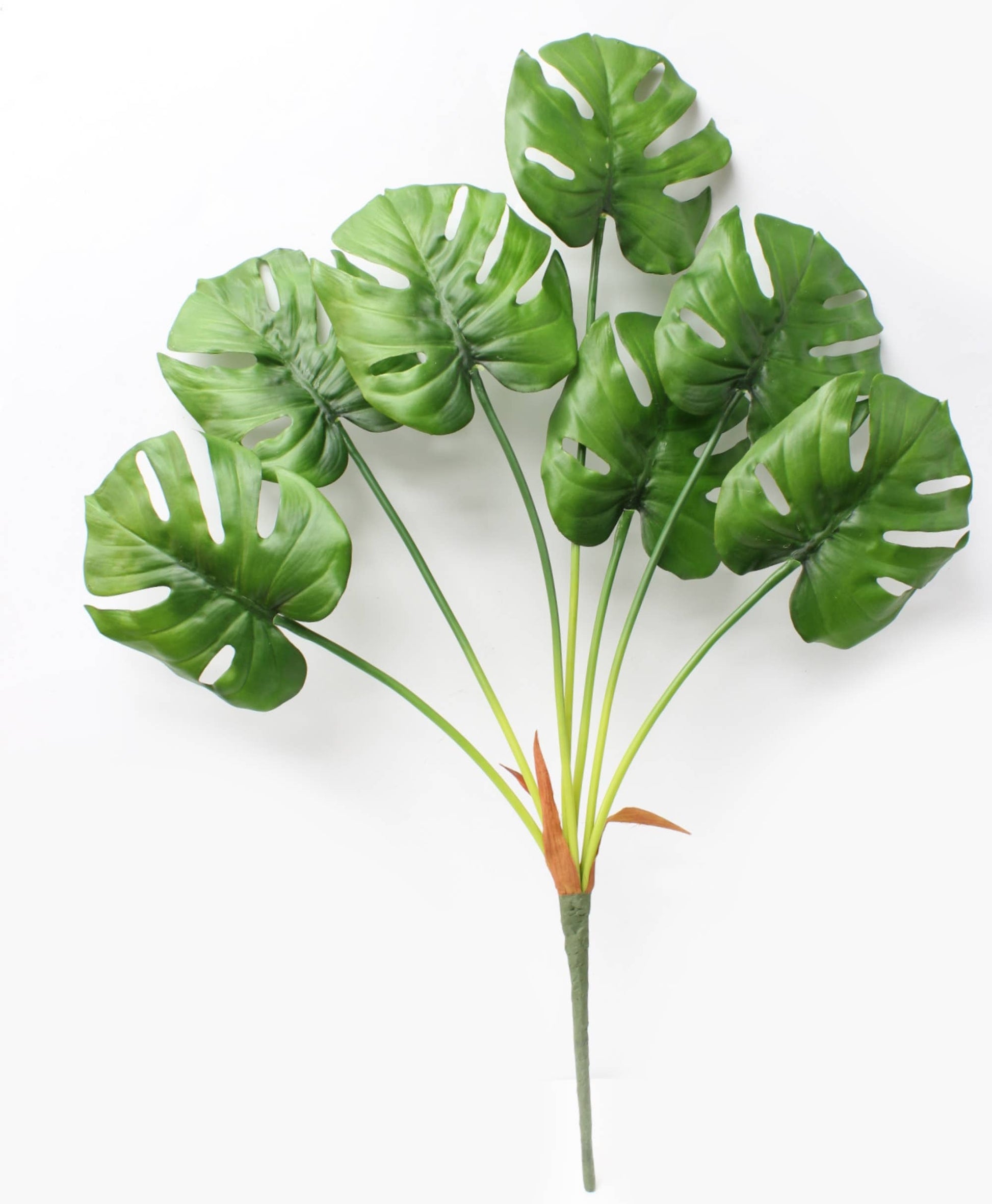 Make a statement with artificial tropical leaves, like this indoor/outdoor soft plastic monstera leaves. Bendable stems can be easily shaped or cut.