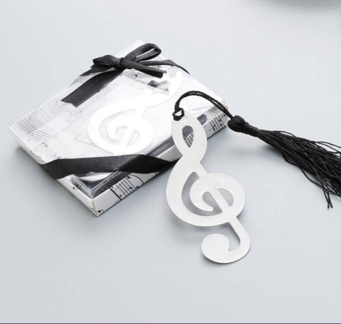 This boxed bookmark makes a great gift for any music enthusiast. It features a silver music symbol embellished with a contrasting tassel. A perfect way to keep your place in any favorite book.
