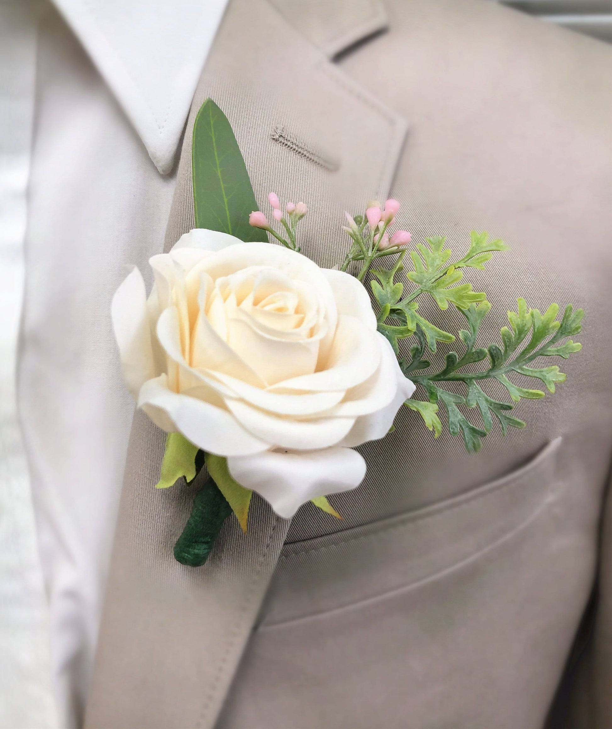 Each boutonniere features a meticulously crafted real-touch rose, accented with delicate shades of pink and a hint of lush greenery, to bring a lifelike charm to your ensemble.