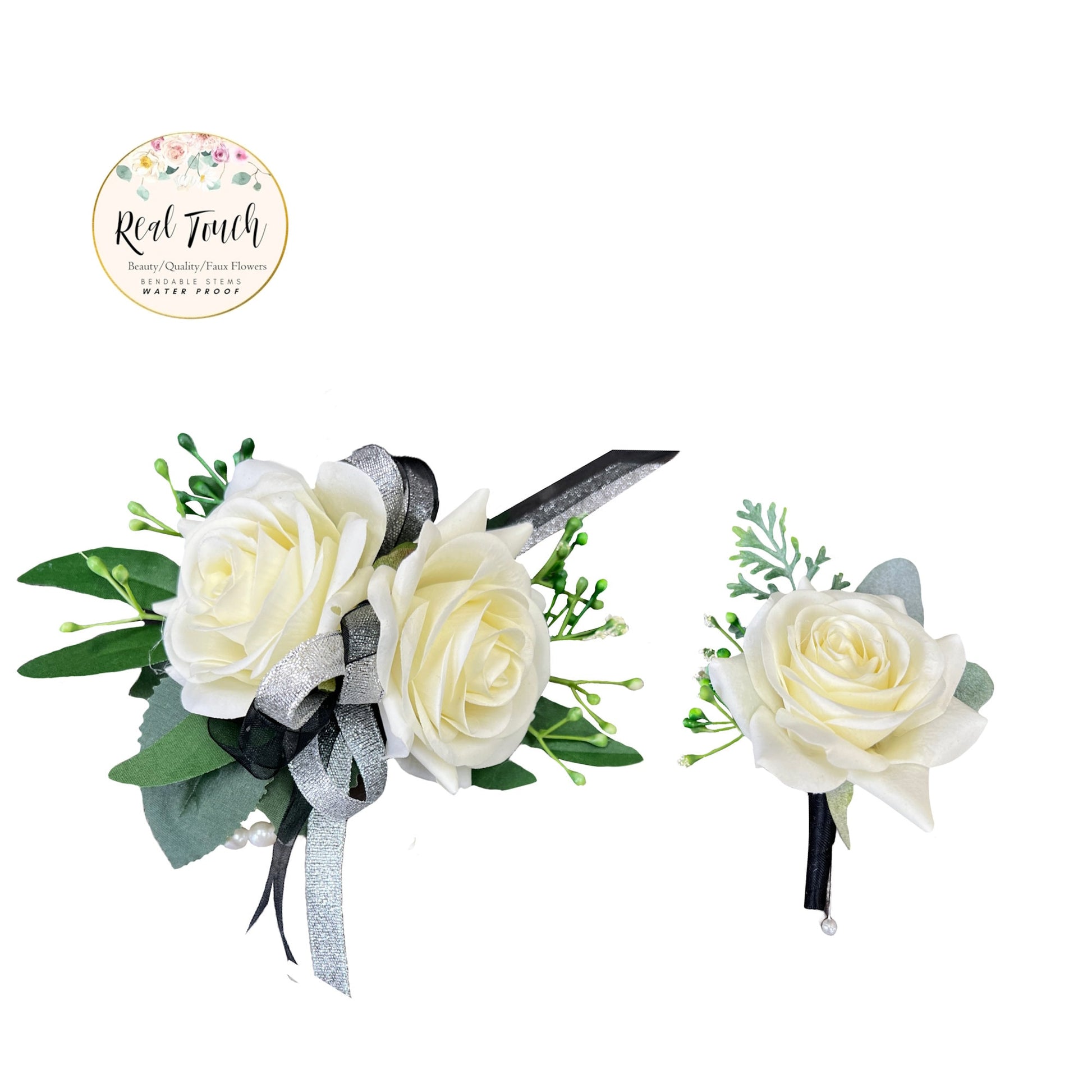 Luxury Real-Touch Rose Corsage & Boutonniere Set for Weddings & Proms
