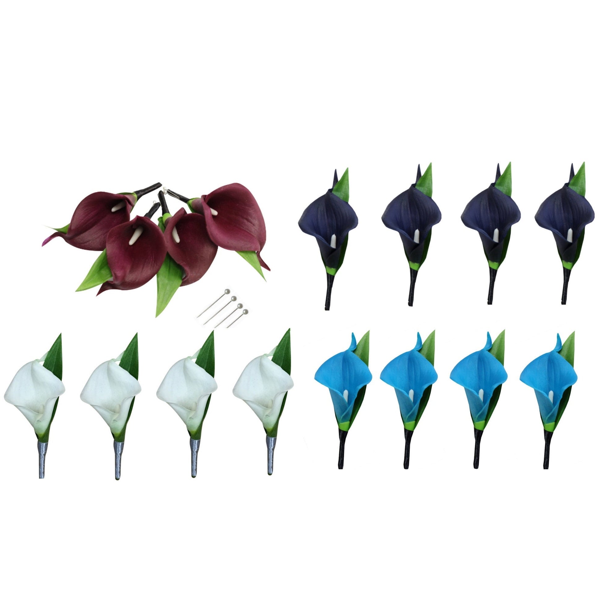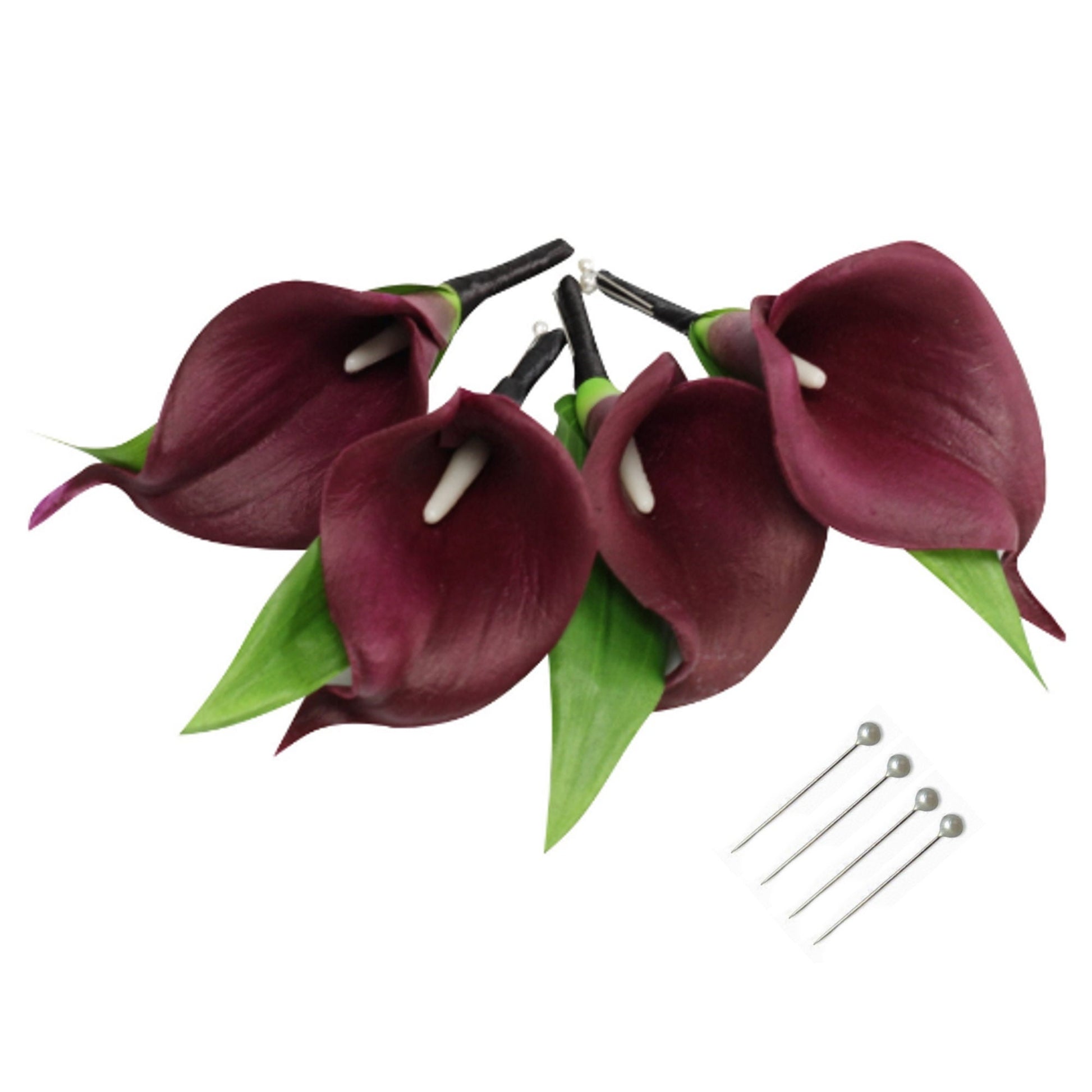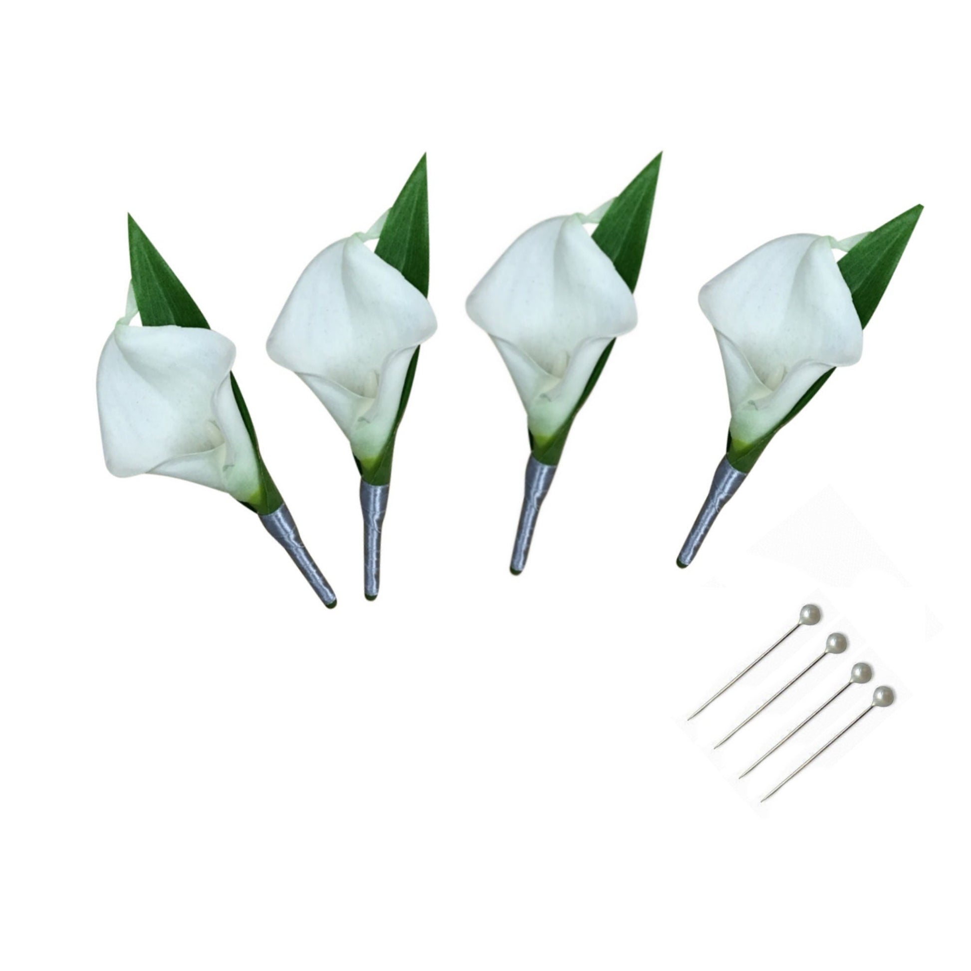 Pack of 4- Real touch calla lily Boutonnieres with greenery and ribbon wrapped stem Pin included Wedding Prom graduation Dance Groom father