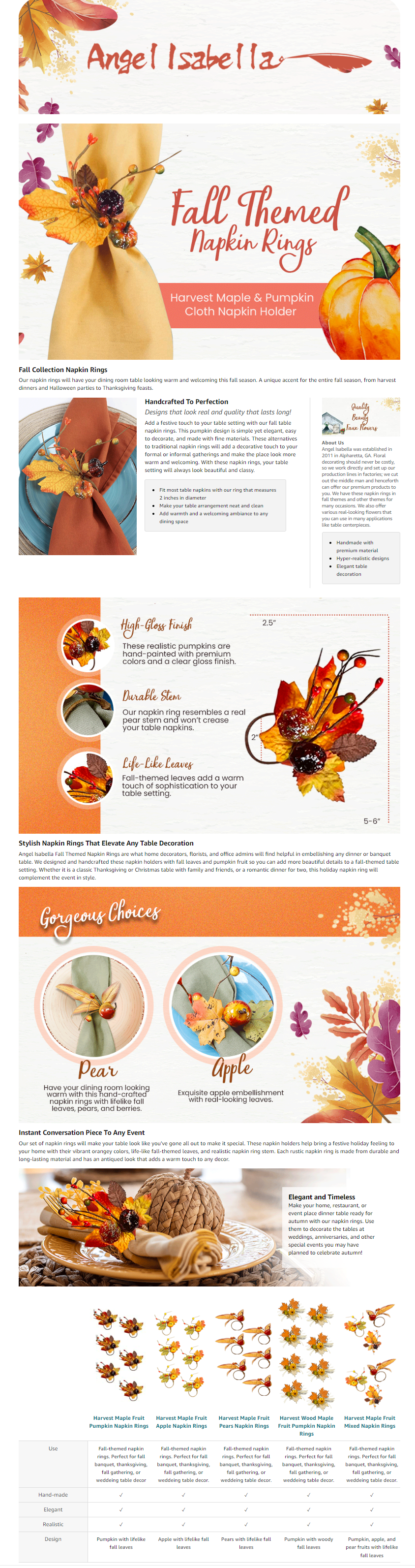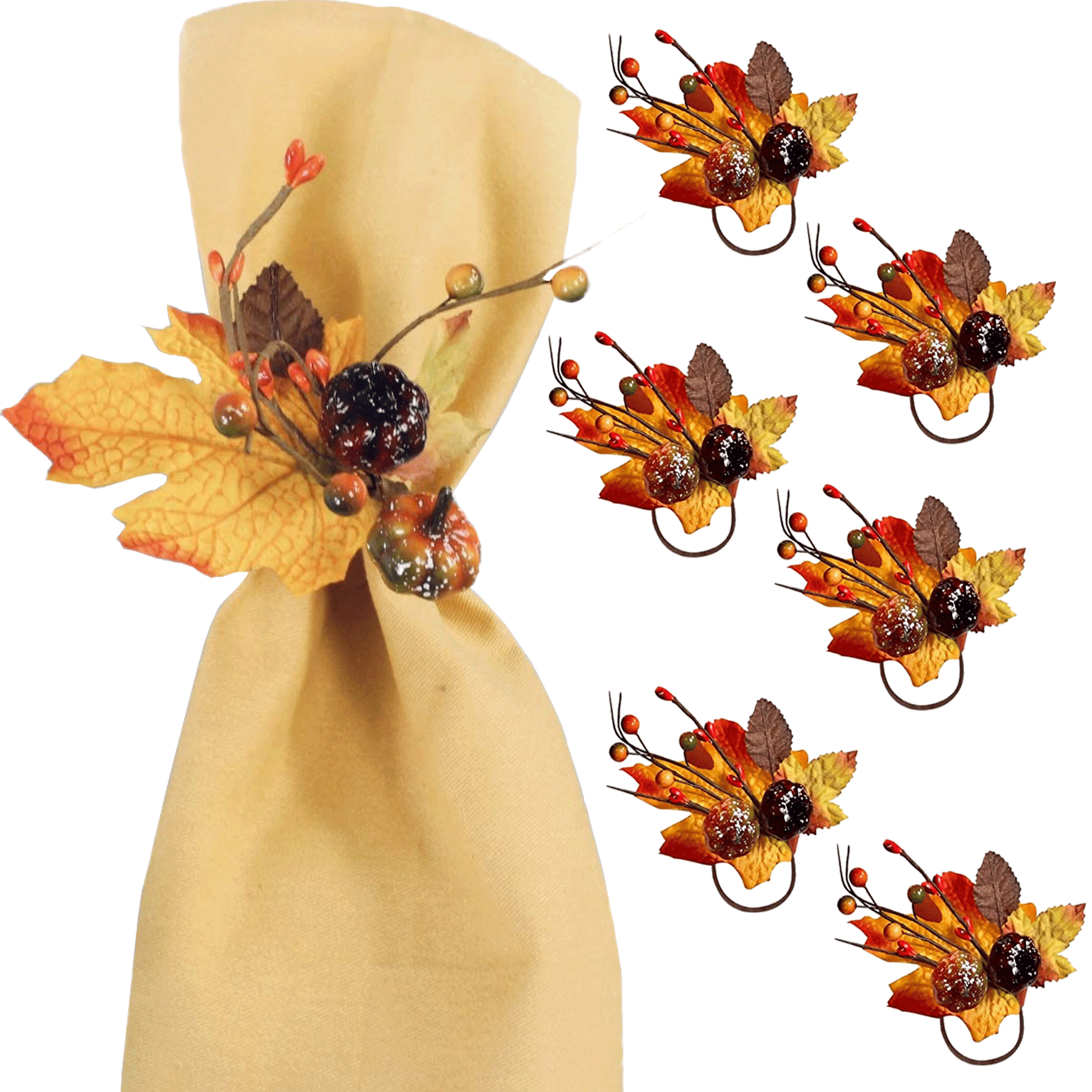 Pack of 6 - Fall napkin rings Maple pumpkin berries