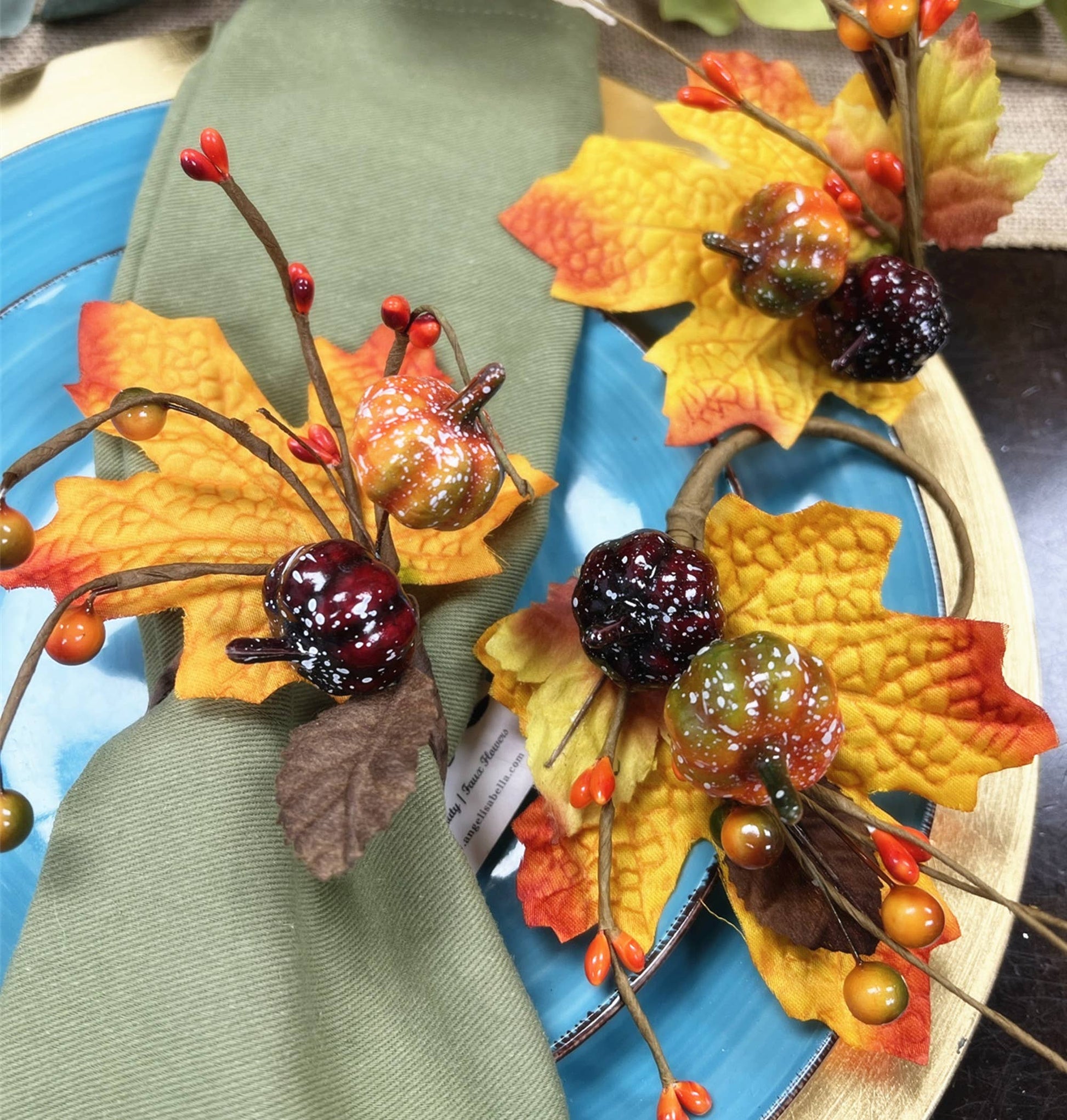 Beautiful place settings are all in the details. The fall napkin rings will have your dining room table looking warm and welcoming this holiday season.