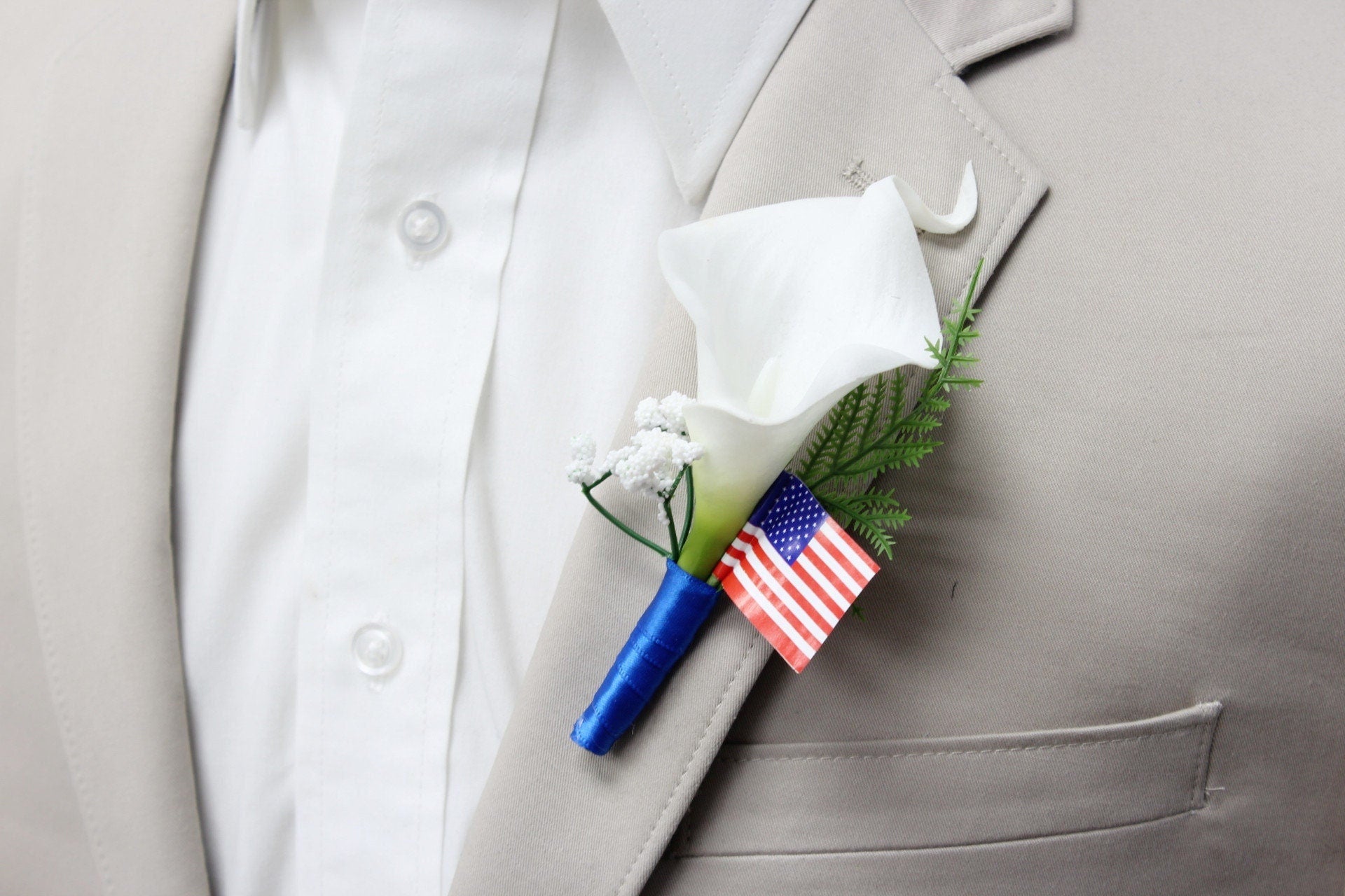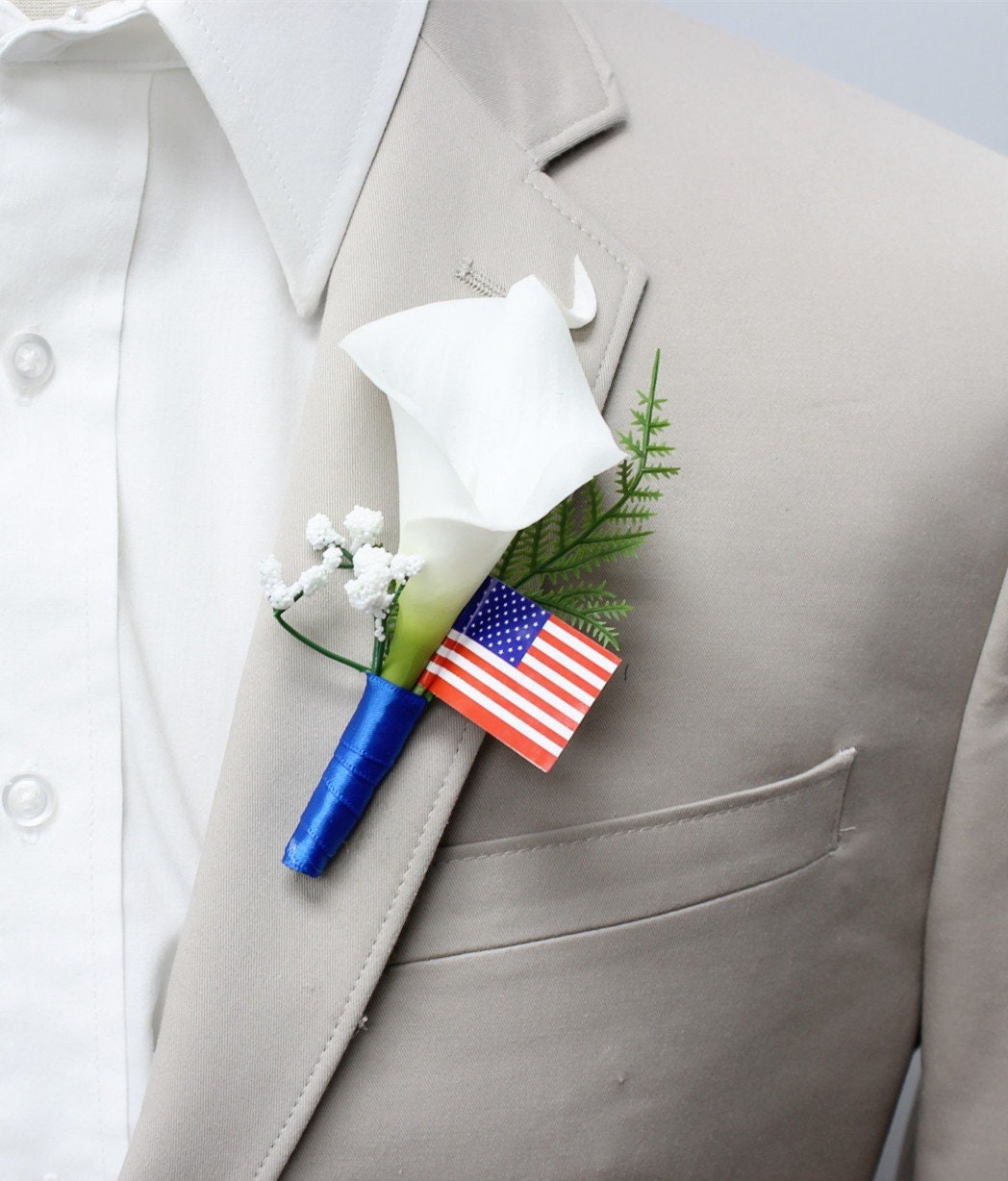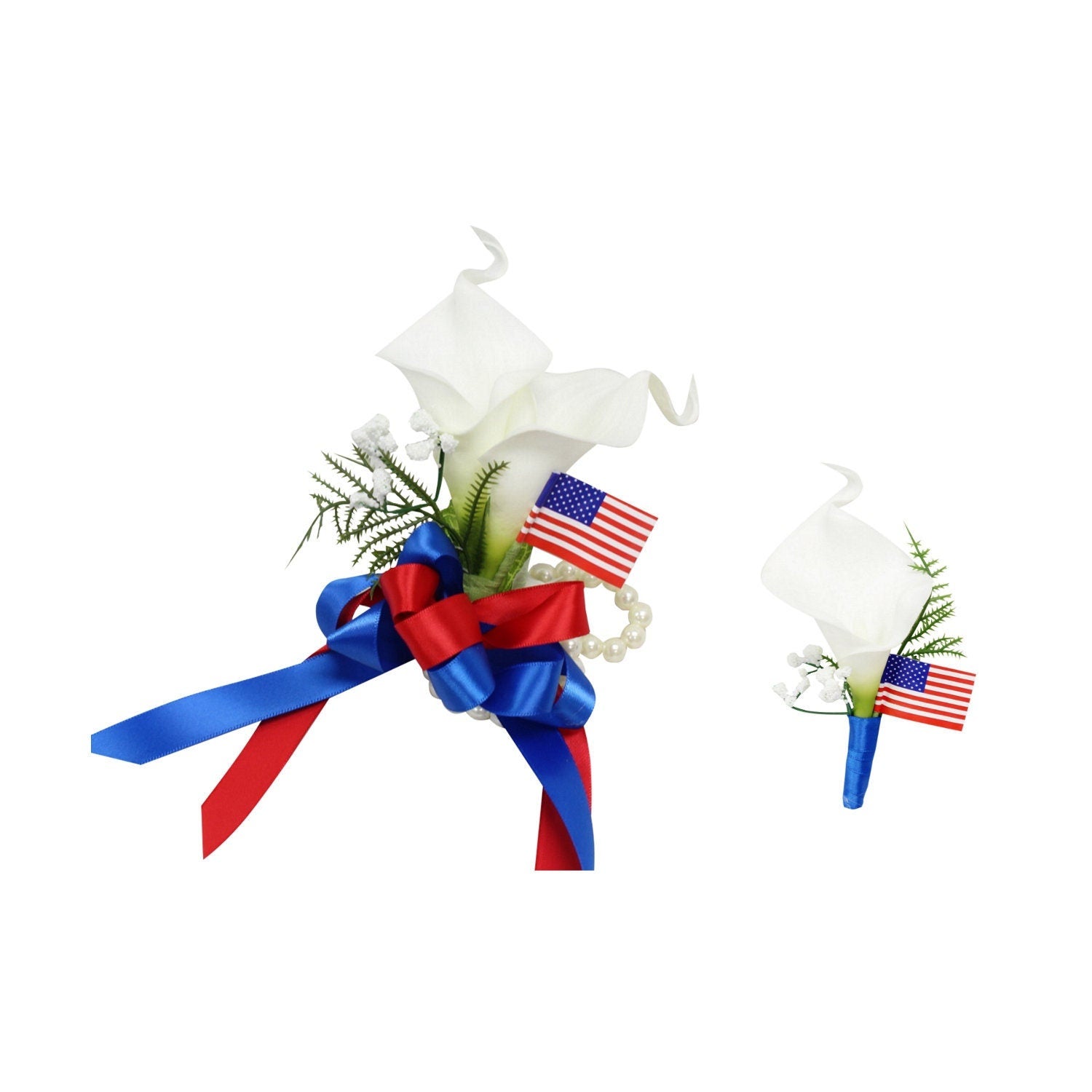 Celebrate your patriotic spirit with our stunning Real Touch Calla Lily Corsage & Boutonniere Set, perfect for Veterans Day, Memorial Day, or the Fourth of July. Select between a pin-on or wrist corsage, each designed to honor and commemorate with elegance.