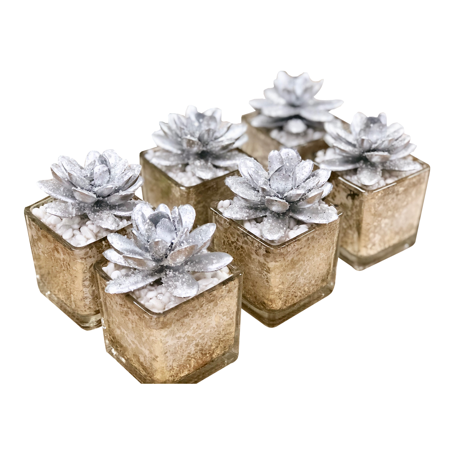 Potted Succulents-mini glittered Silver gold Echeveria