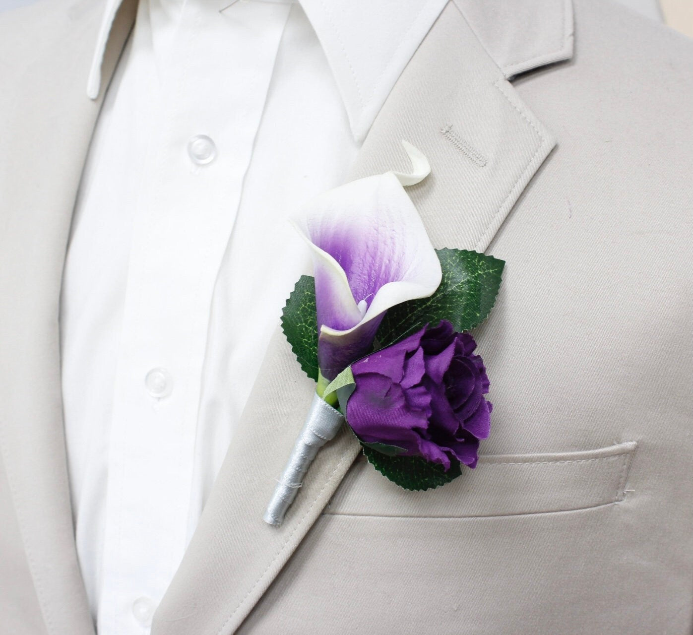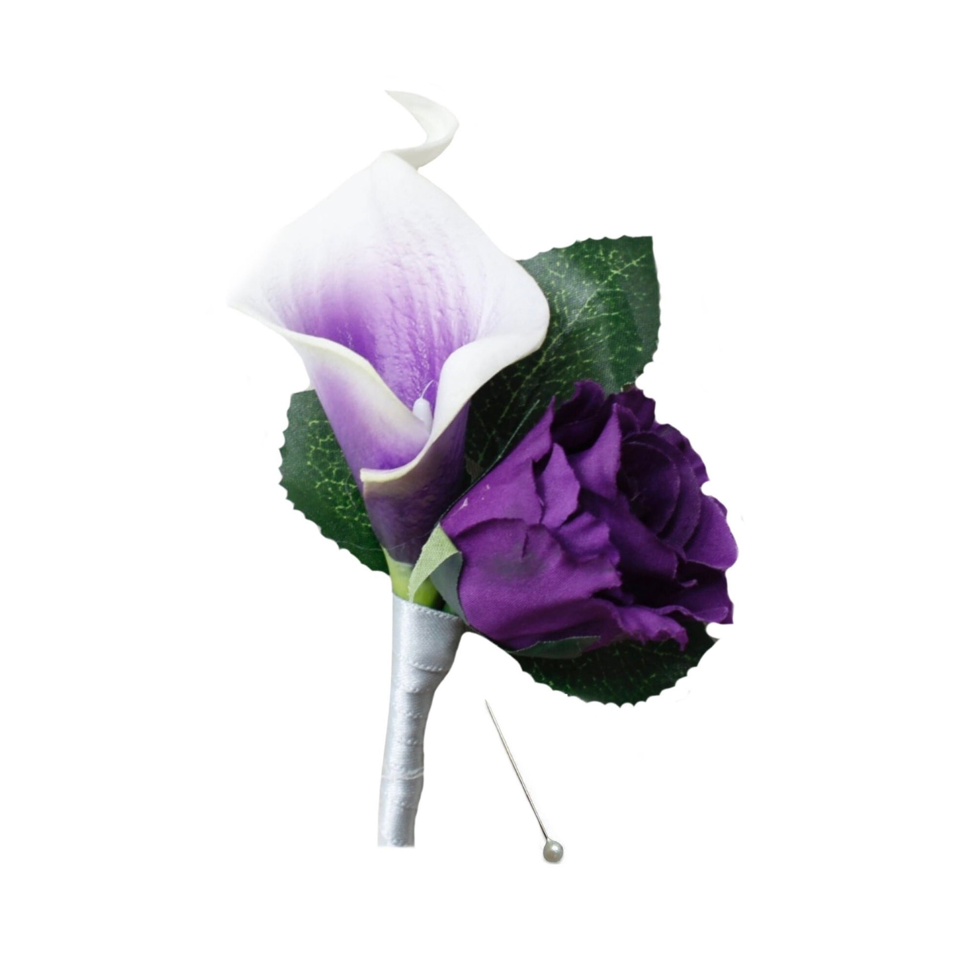 Purple -Boutonniere-keepsake artificial roses real touch Picasso Teal wedding groom groomsmen prom graduation flower