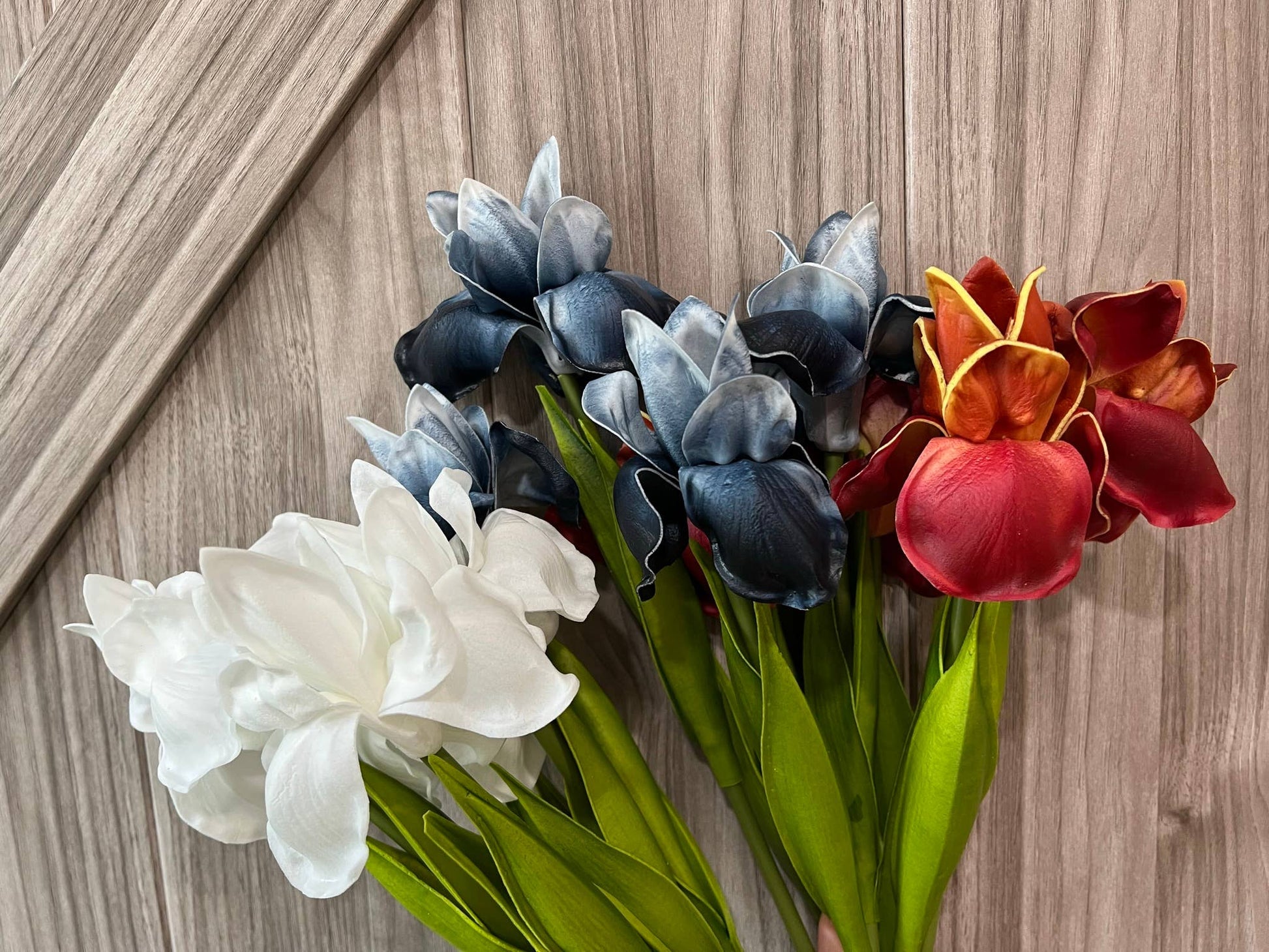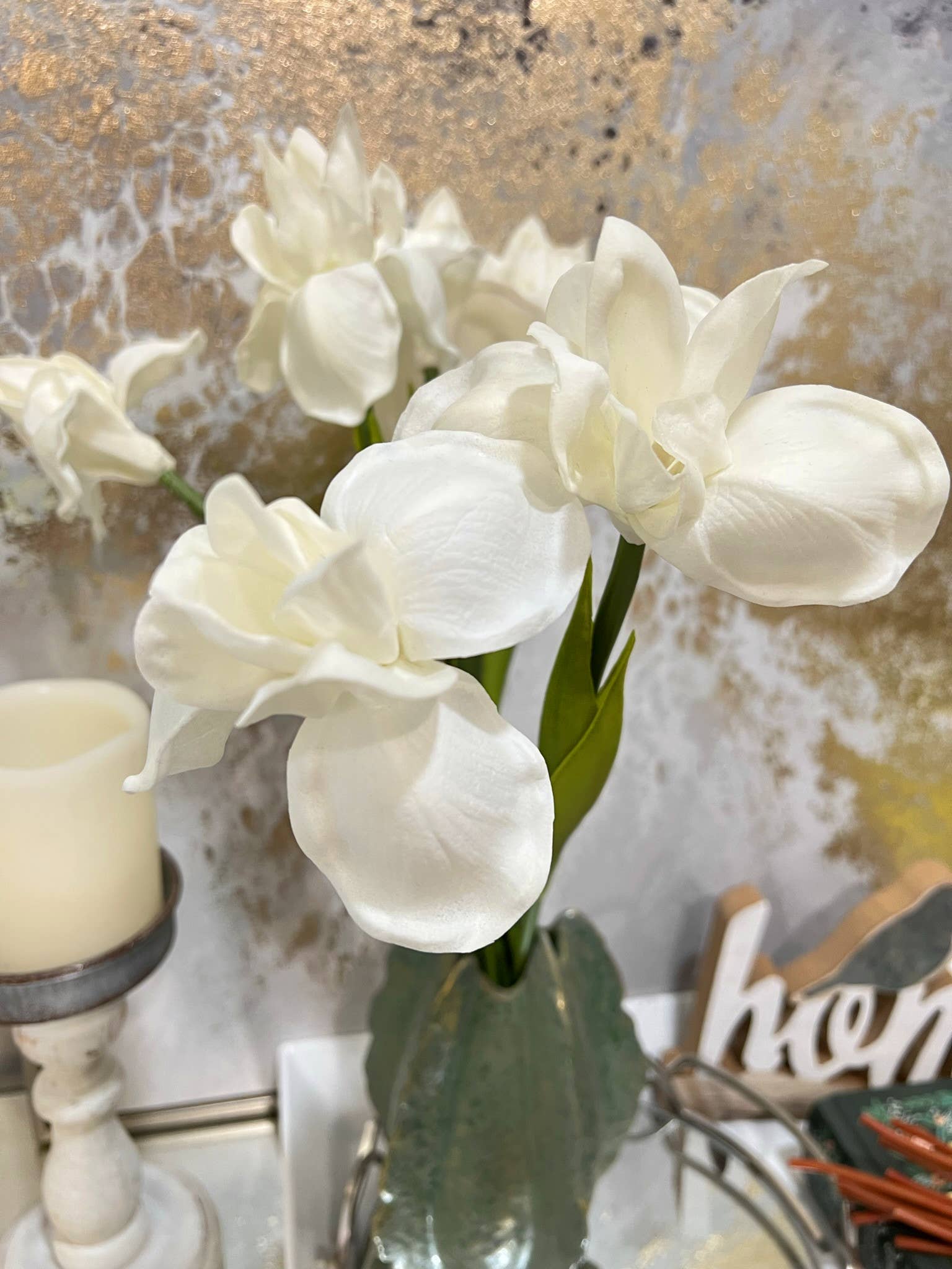 Enjoy artificial spring botanicals and blooms any time of the year with high-quality polyurethane flowers that stay beautiful. These vibrant bearded irises are the stems that make your everyday vase arrangement pop.