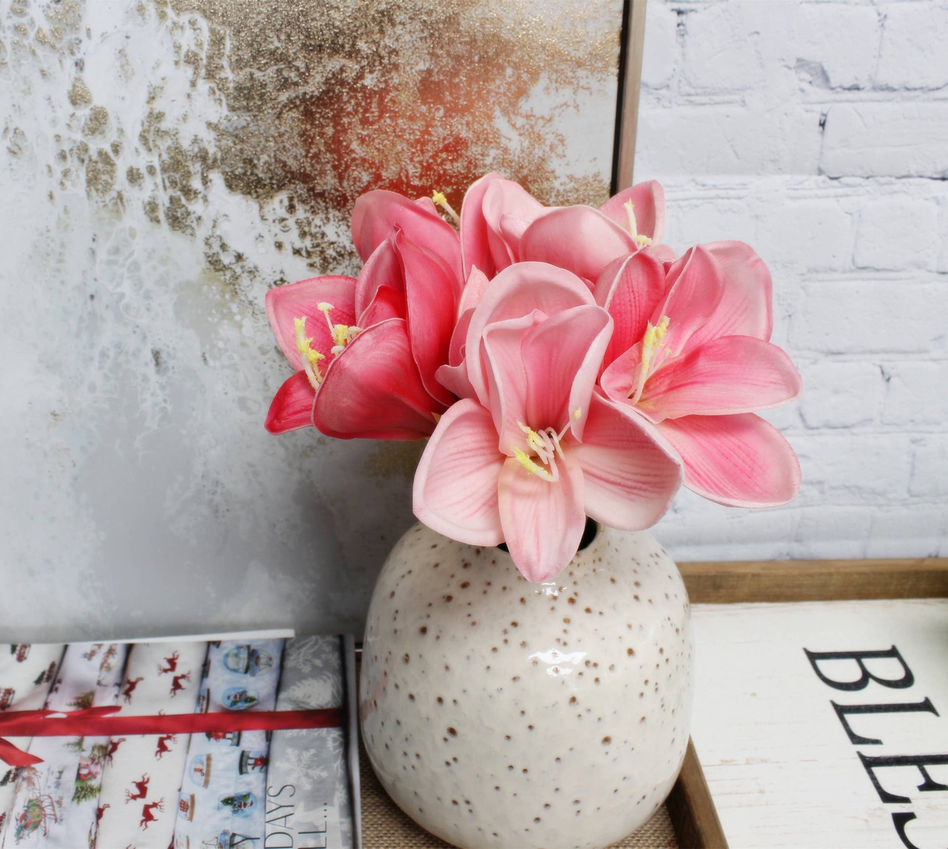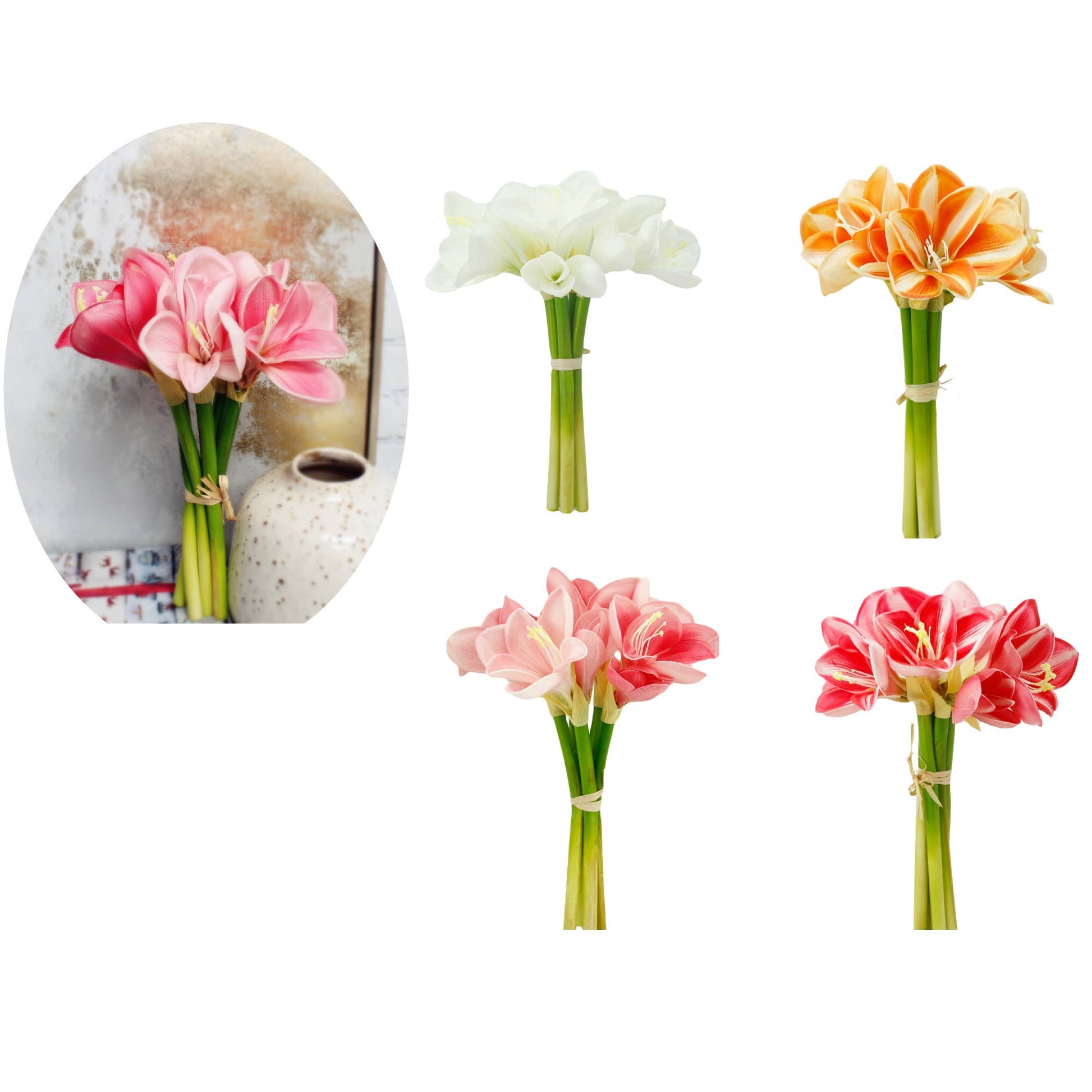 Stunning lifelike real touch faux Amaryllis is perfect for table centerpieces or cut to bouquets, candle flowers, and more.
