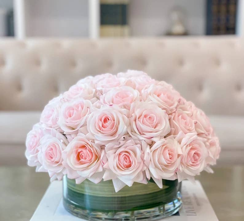 The real touch rose raffia tied bouquet is a beautiful way to add a romantic touch to any room. This unique decor piece features 7 stems of real touch roses tied with raffia, creating a stunning display that will bring a touch of elegance to any space. The roses are made from polyester material with damp wax coating that looks and feels like the real thing, and the raffia adds a rustic charm.