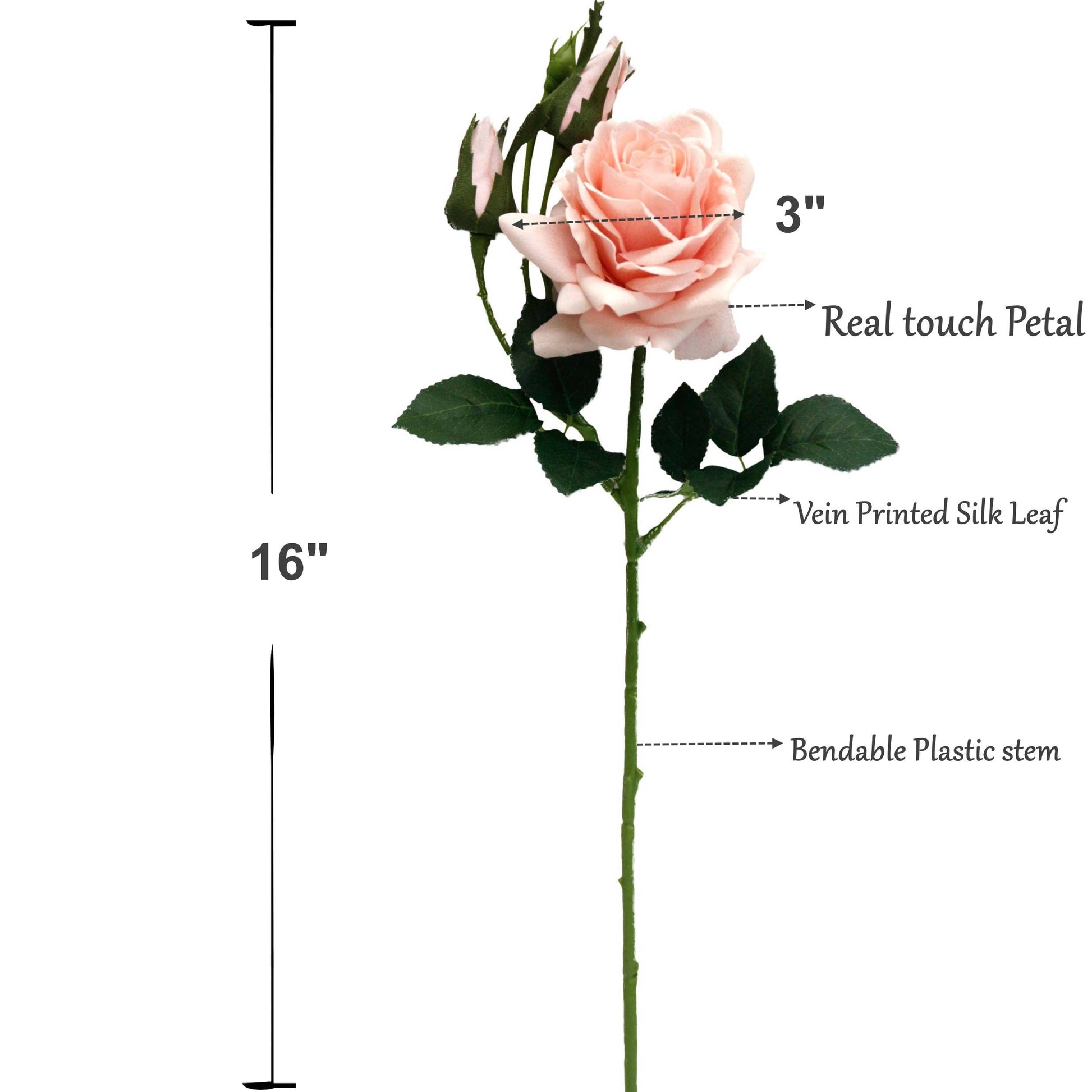 - Dimension: 16” in height, flower dimension: Open rose 3"DIA x 2.5"Tall; Mini rosebuds: 1.5"tall