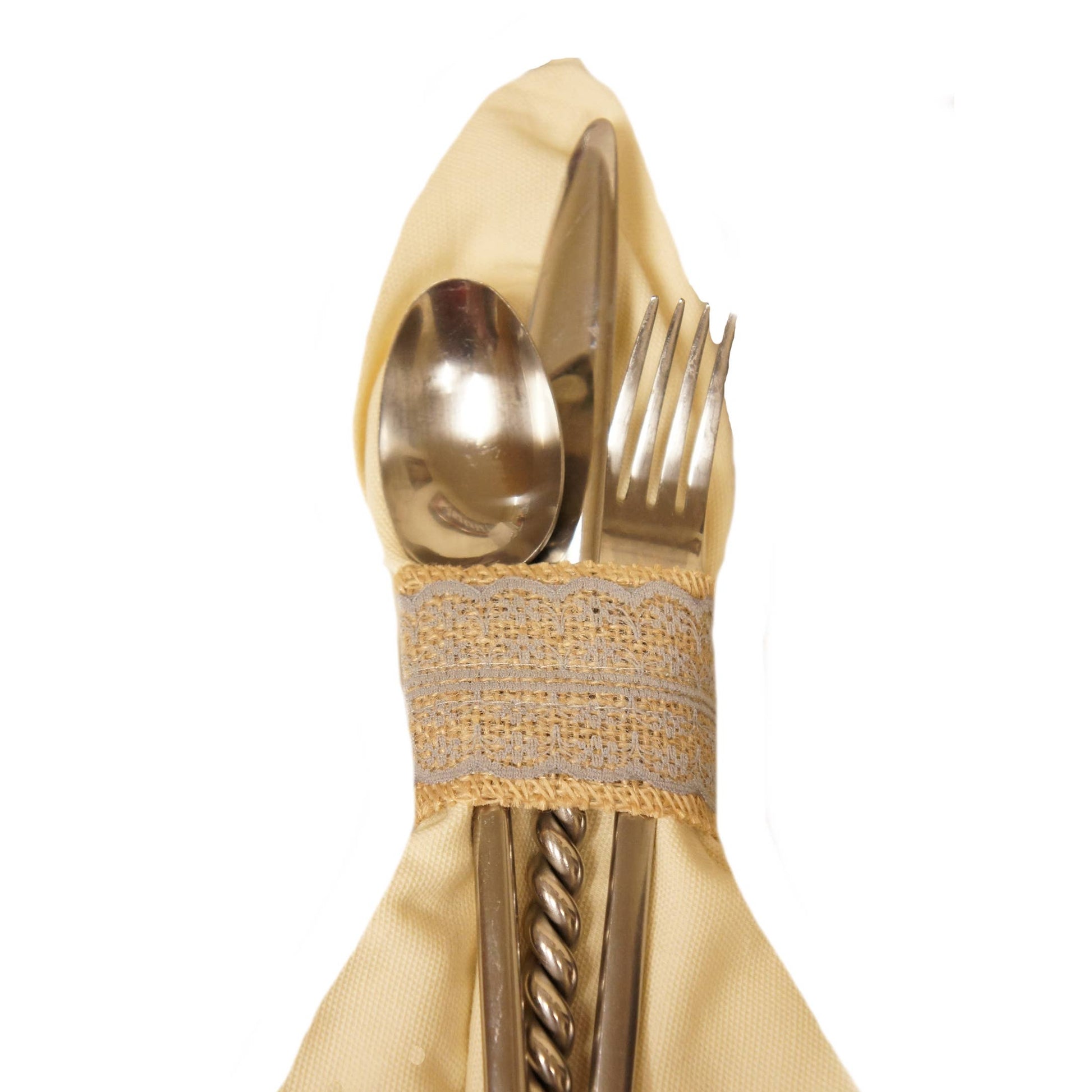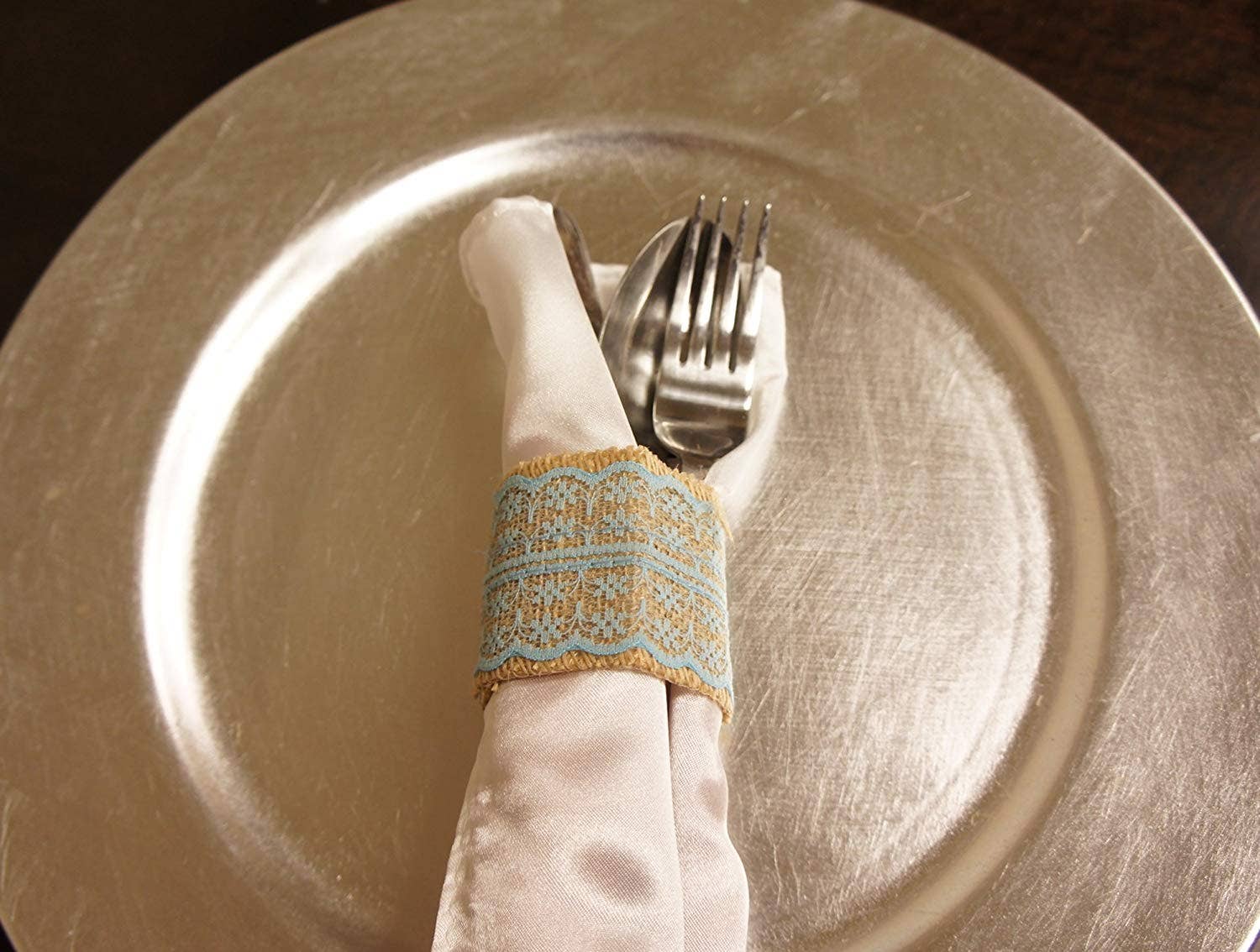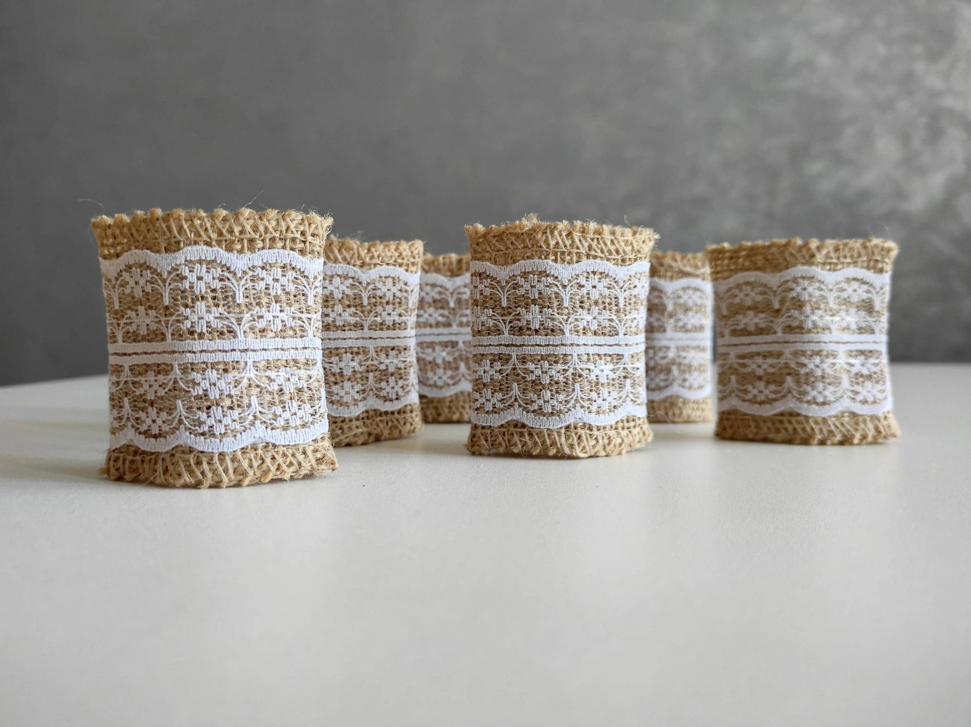 2"Rustic Burlap Napkin ring with Lace-Pack of 6