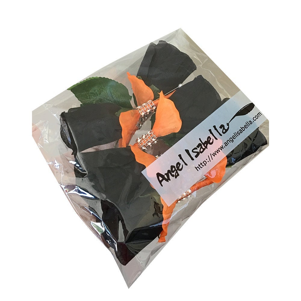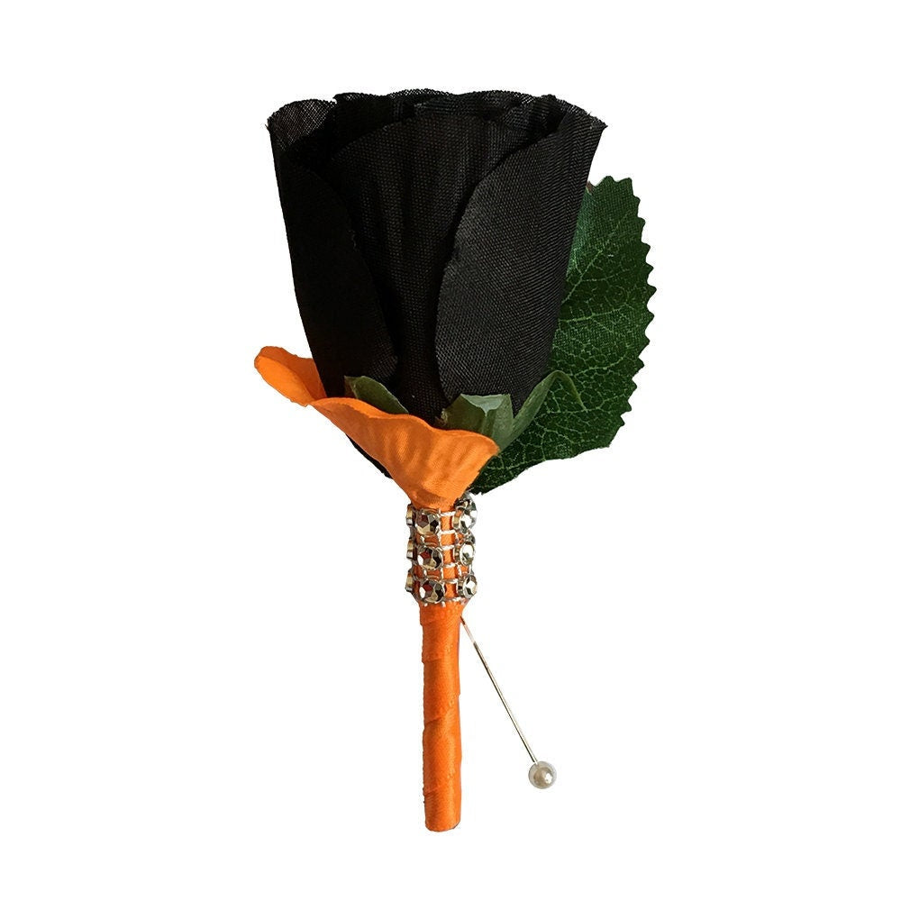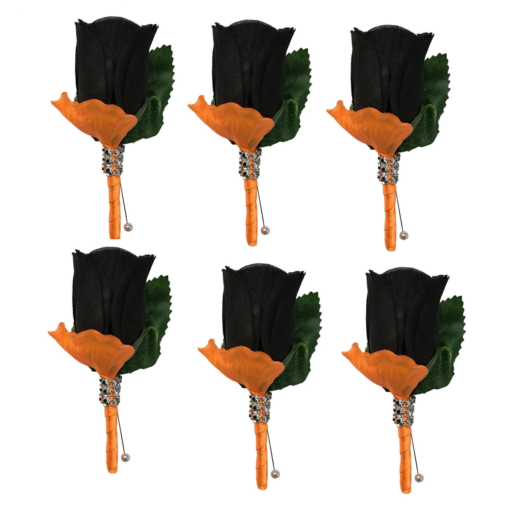 Set of 6 artificial Boutonniere-Black orange Halloween Thanksgiving Fall wedding theme-pearl headed pin included