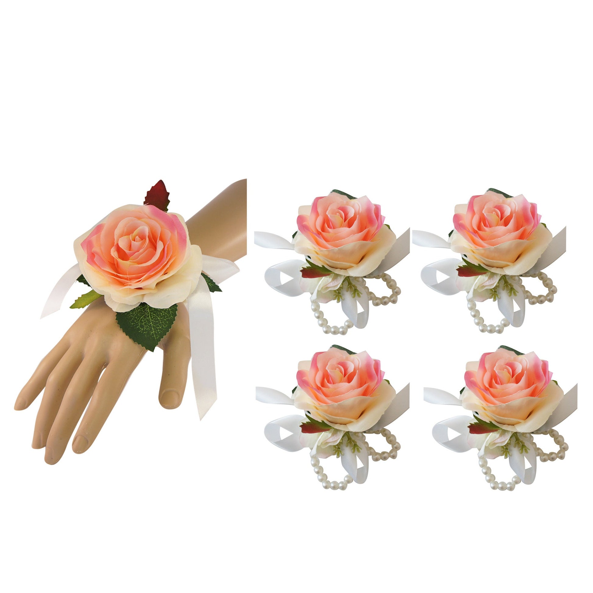 Discover the charm and sophistication of our premium silk corsages, each piece a work of art lovingly crafted by hand. This exquisite set of five corsages showcases elegant silk roses paired with delicate hydrangea blooms, each adorned with a sleek satin ribbon bow for a touch of elegance. Beyond mere accessories, these corsages are timeless keepsakes that commemorate the joy and love of your most precious moments. Designed with convenience in mind, every corsage features an easy-to-wear pearl wristband, ensuring a flawless fit while elevating your style quotient.