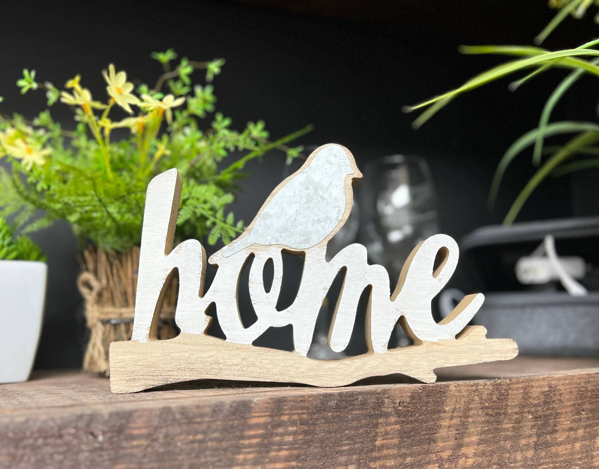 Crafted from high-quality wood, this 10"long x 6"tall x 0.65"Width table sign is the perfect addition to "HOME" farmhouse home decor.